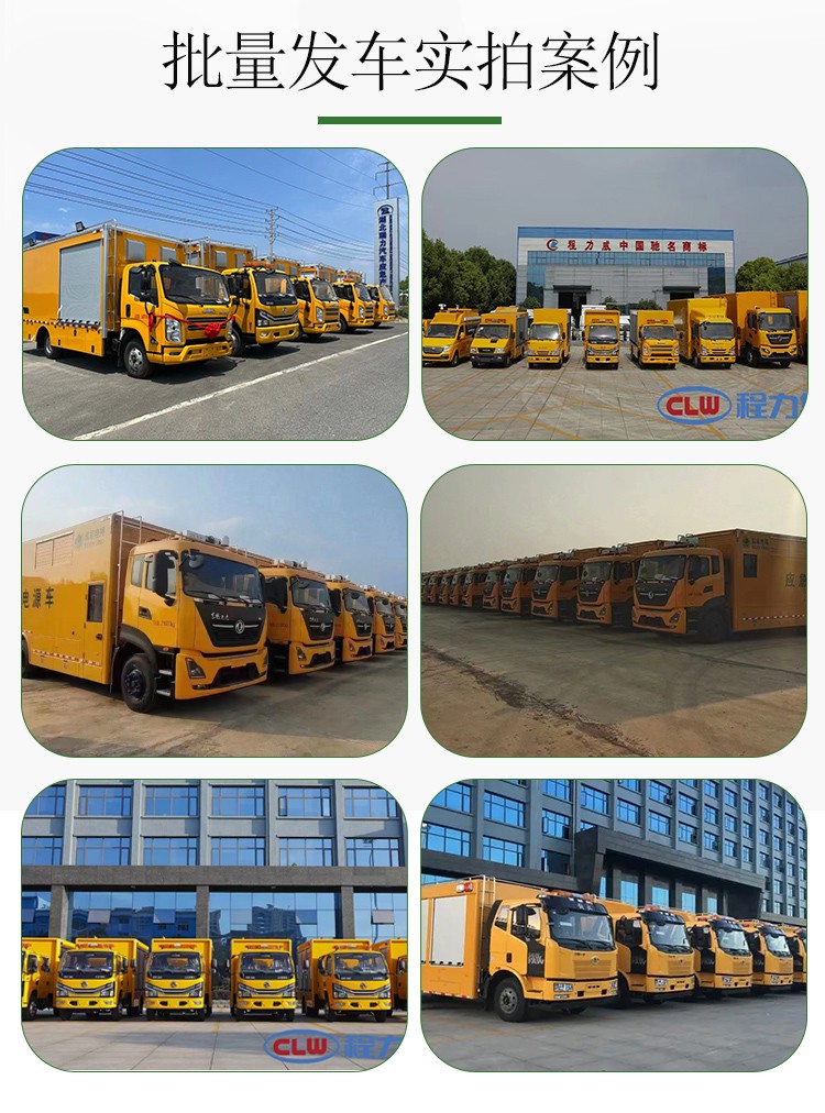 主要配置:發電機組、進口大流量排水泵、靜音廂體、車載空調、液壓支腿、配電控制系統、電纜絞盤、防爆照明燈、車載升降照明燈及搶險工具等。